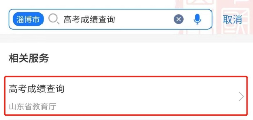 查询方式一: 1、进入“爱山东”APP、支付宝小程序,首页搜索“高考成绩查询”进入服务; 2、根据页面提示,输入考生号、证件号后四位和手机短信密码,即可查询高考成绩。