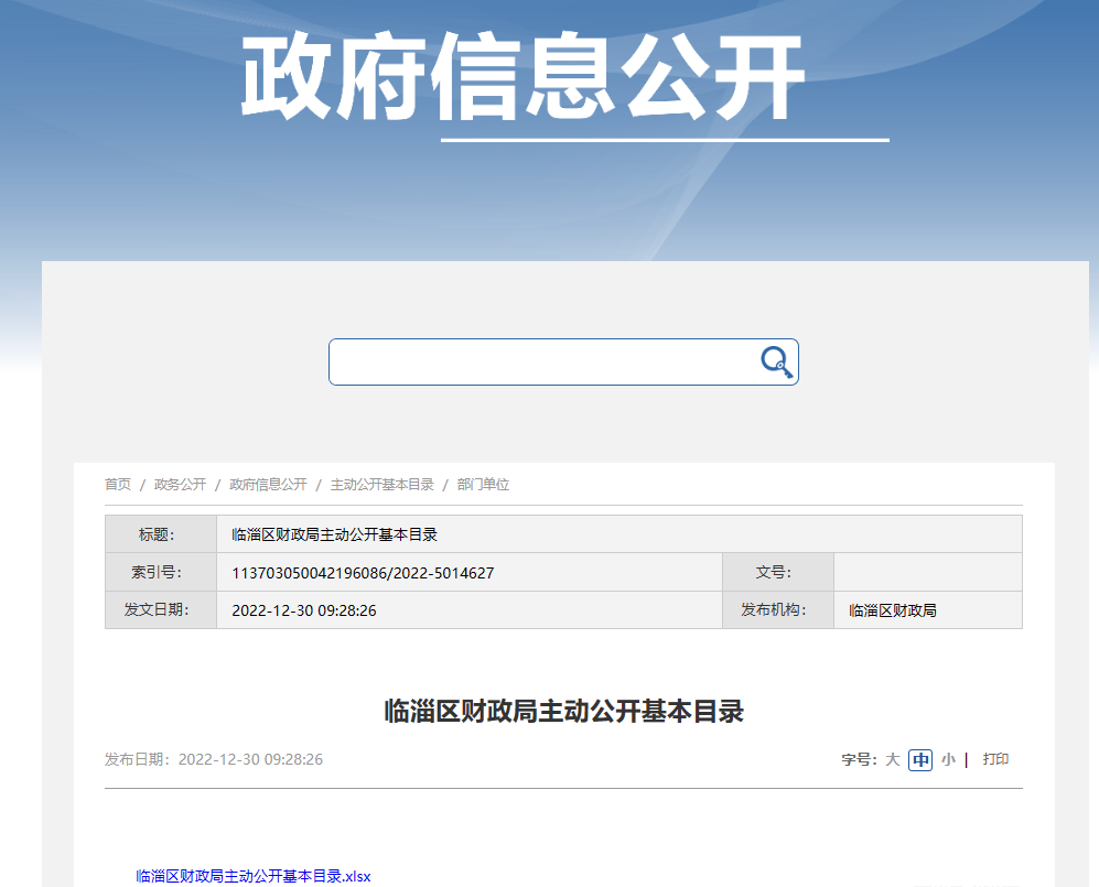 本机关政府信息公开工作机构与申请受理机构:临淄区财政局办公室
