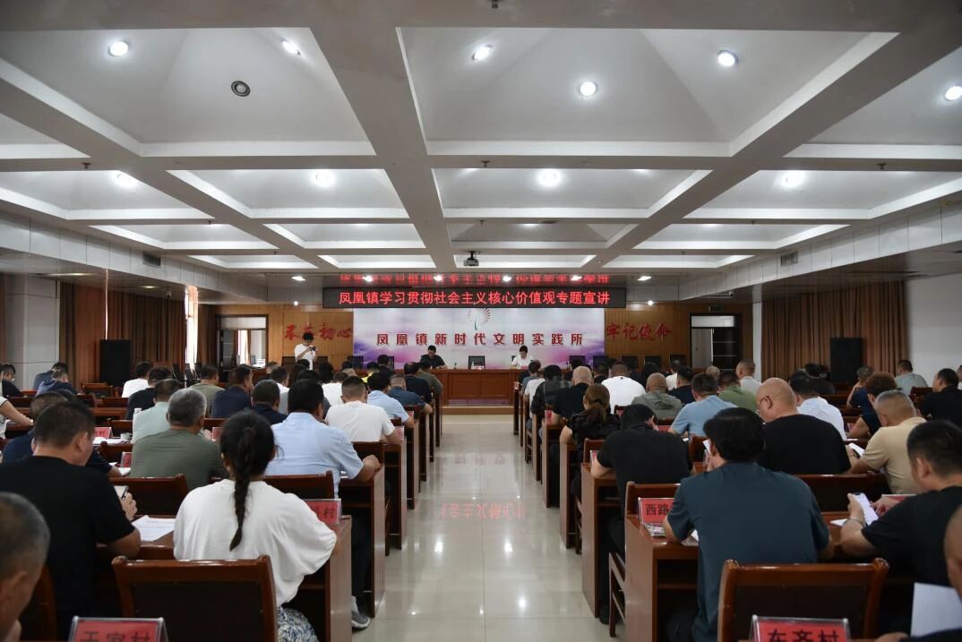 为深入学习贯彻习近平新时代中国特色社会主义思想和党的二十大及二十届三中全会精神,进一步弘扬社会主义核心价值观,引导广大党员干部树立正确的价值观,近日,凤凰镇在新时代文明实践所成功举办了“学习贯彻社会主义核心价值观”专题宣讲活动。本次活动由镇党委副书记王斌主持,吸引了镇两委成员、村党支部书记、机关党员、包村干部及农村党员代表等100余人参加,旨在通过理论结合实践,推动社会主义核心价值观在基层落地生根。