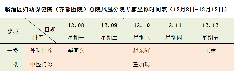 临淄区妇幼保健院(齐都医院)总院专家12月8日—12月12日到凤凰分院坐诊信息!