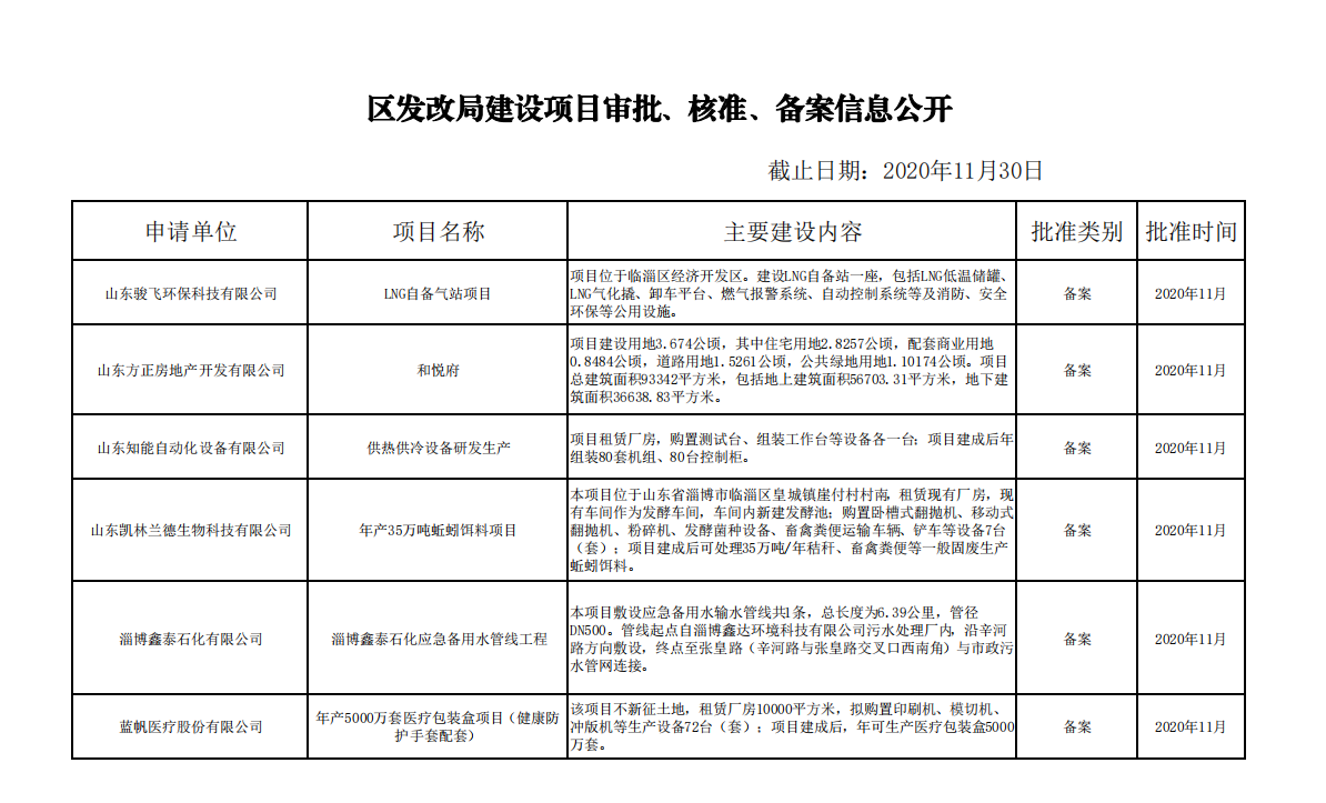 区发改局2020年11月份立项批复项目情况