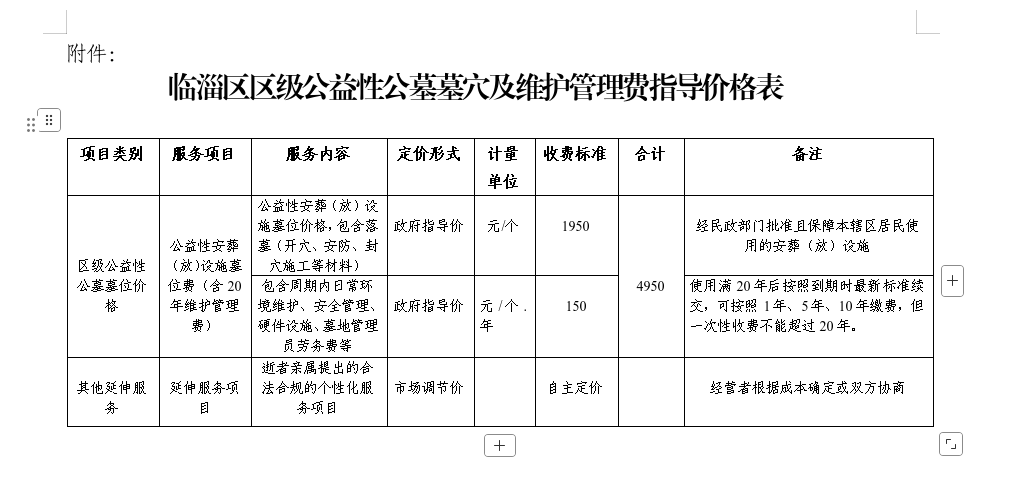 附件:临淄区区级公益性公墓墓穴及维护管理费指导价格表