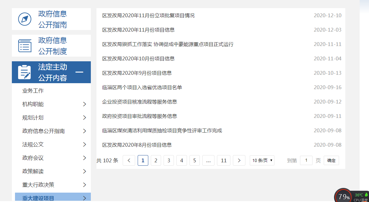 在临淄区门户网站设立临淄区发展和改革政府信息公开专栏,主动公布信息公开目录和信息公开指南等内容,结合发改工作实际,设置了“业务工作”“重大项目建设”“政策解读”“民生公益”“管理和服务公开”等栏目,按要求对外公开政府信息,做到及时维护和更新。