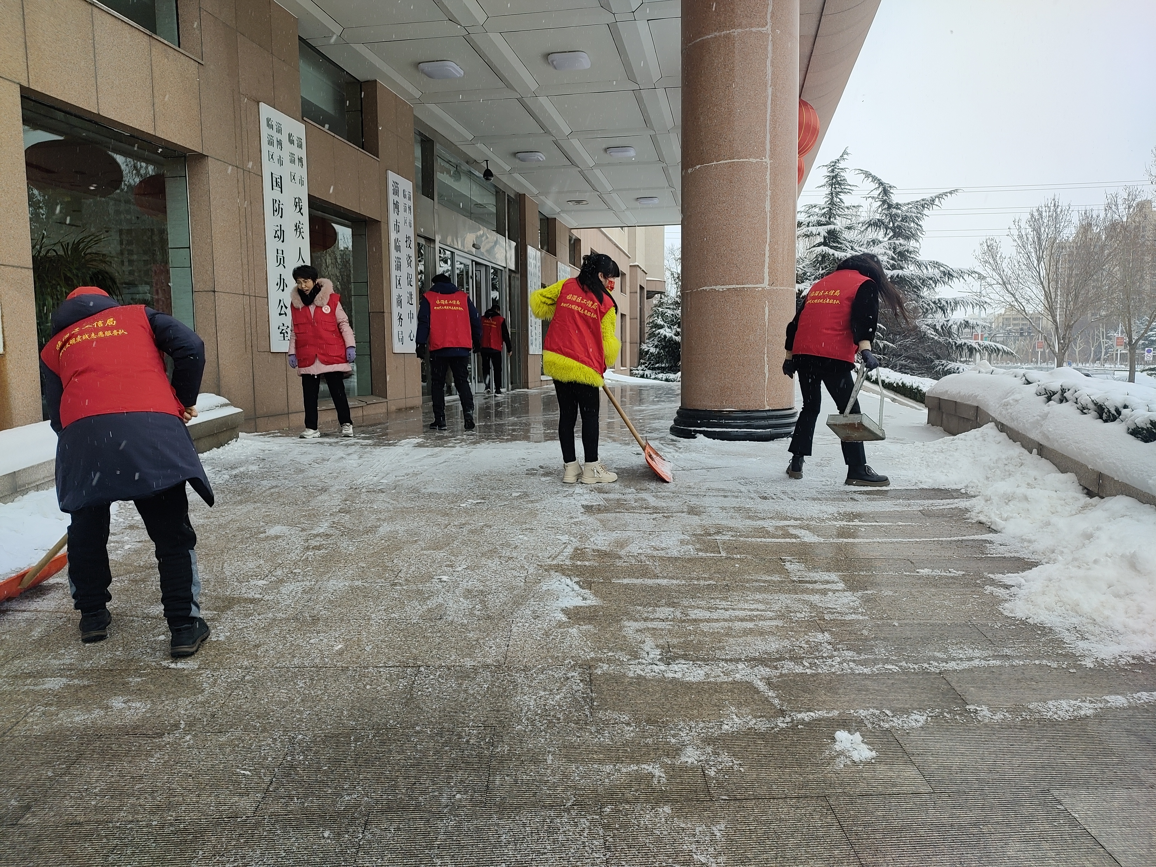 经过连续两天的降雪,城市银装素裹,积雪和冰冻给市民出行带来诸多不便和安全风险,2月22日,区工信局迅速行动,组织干部职工开展扫雪除冰志愿服务活动。此次活动主要集中在政府机关西楼台阶、院内及其周边道路,目标是为市民打造安全畅通的出行环境。