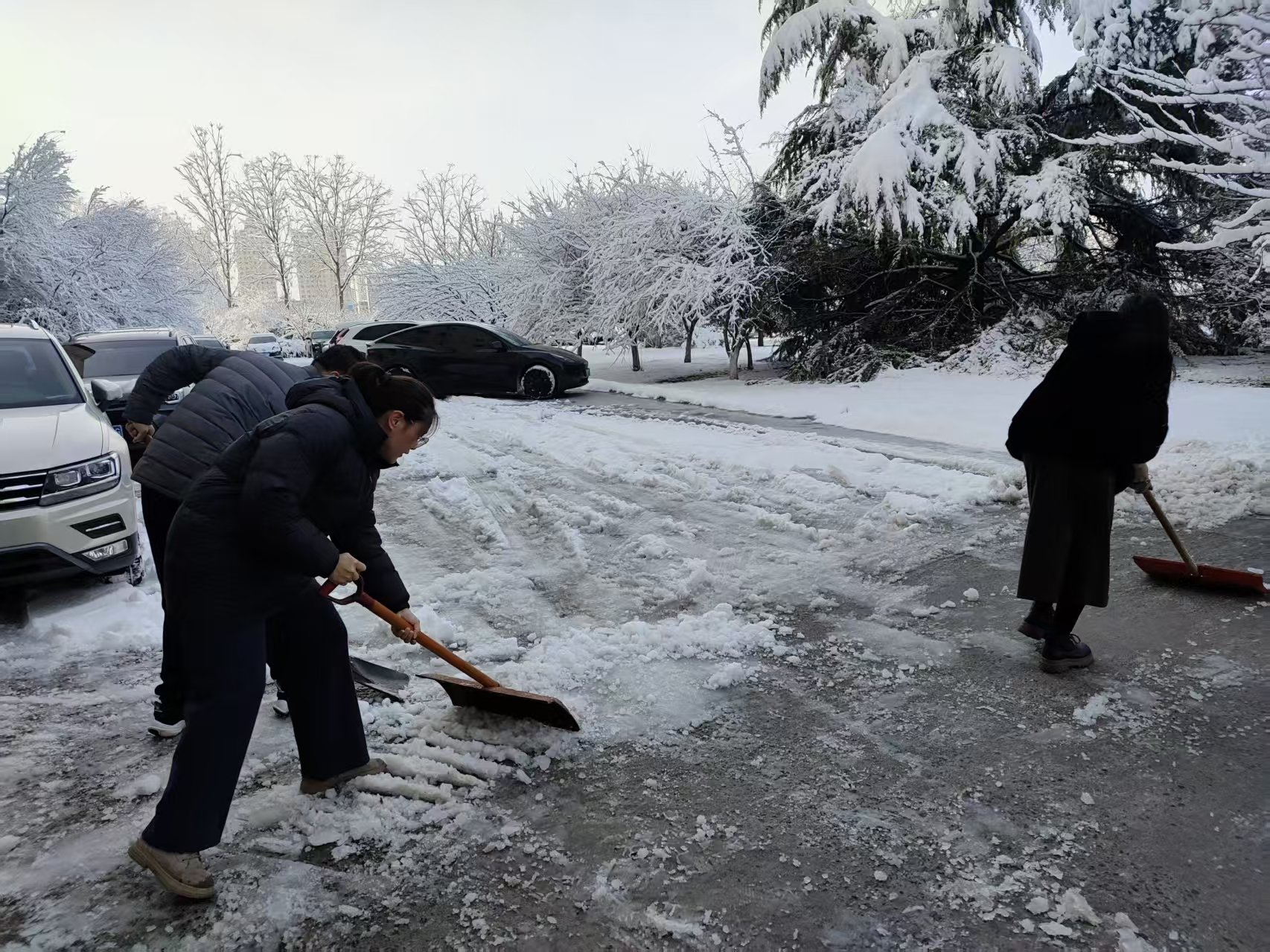 闻雪而动,争当清雪排头兵风雪中,身着红马甲的党员干部以雷锋为榜样,冲锋在前,手持铁锹、扫帚等工具,分工协作、默契配合,对重点路面积雪和路面结冰进行集中清理。活动现场热火朝天,生动诠释了为人民服务的雷锋精神。