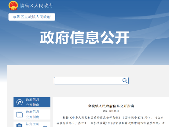 本机关政府信息公开工作申请受理机构为:淄博市临淄区皇城镇人民政府党政办公室