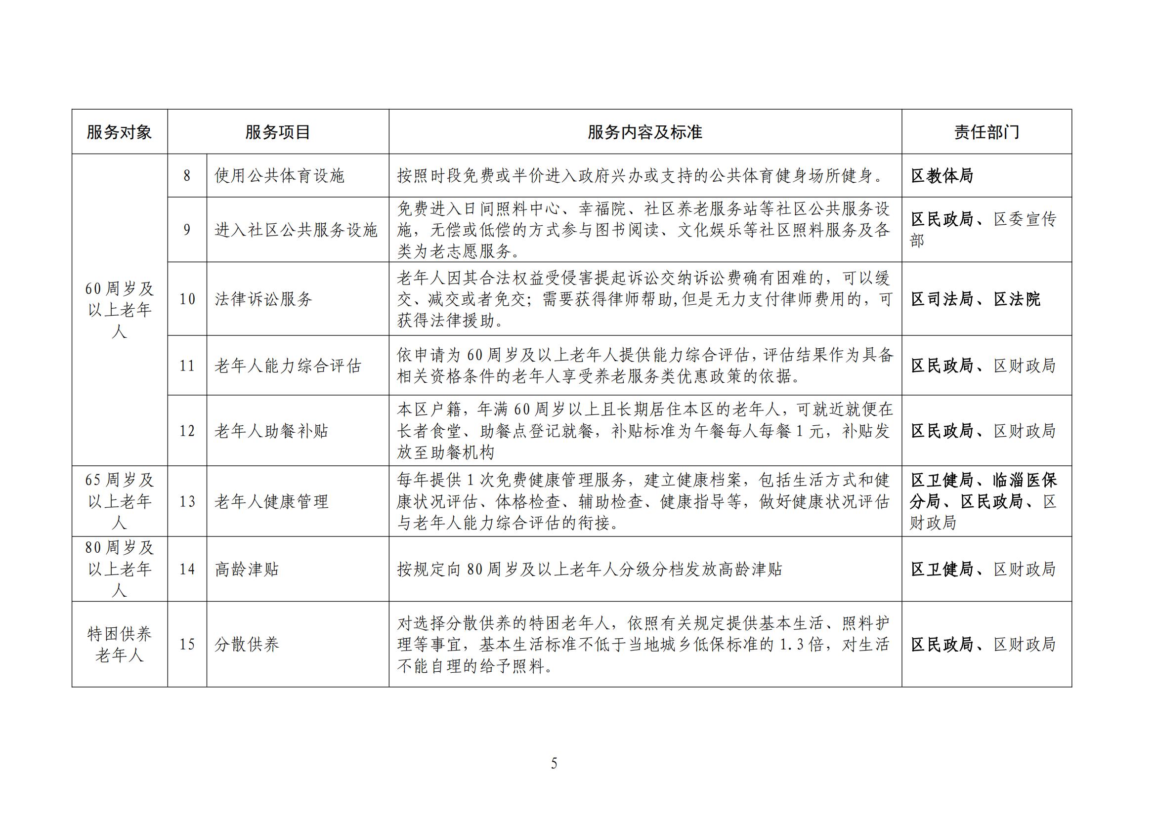 临淄区2023年度基本养老服务清单