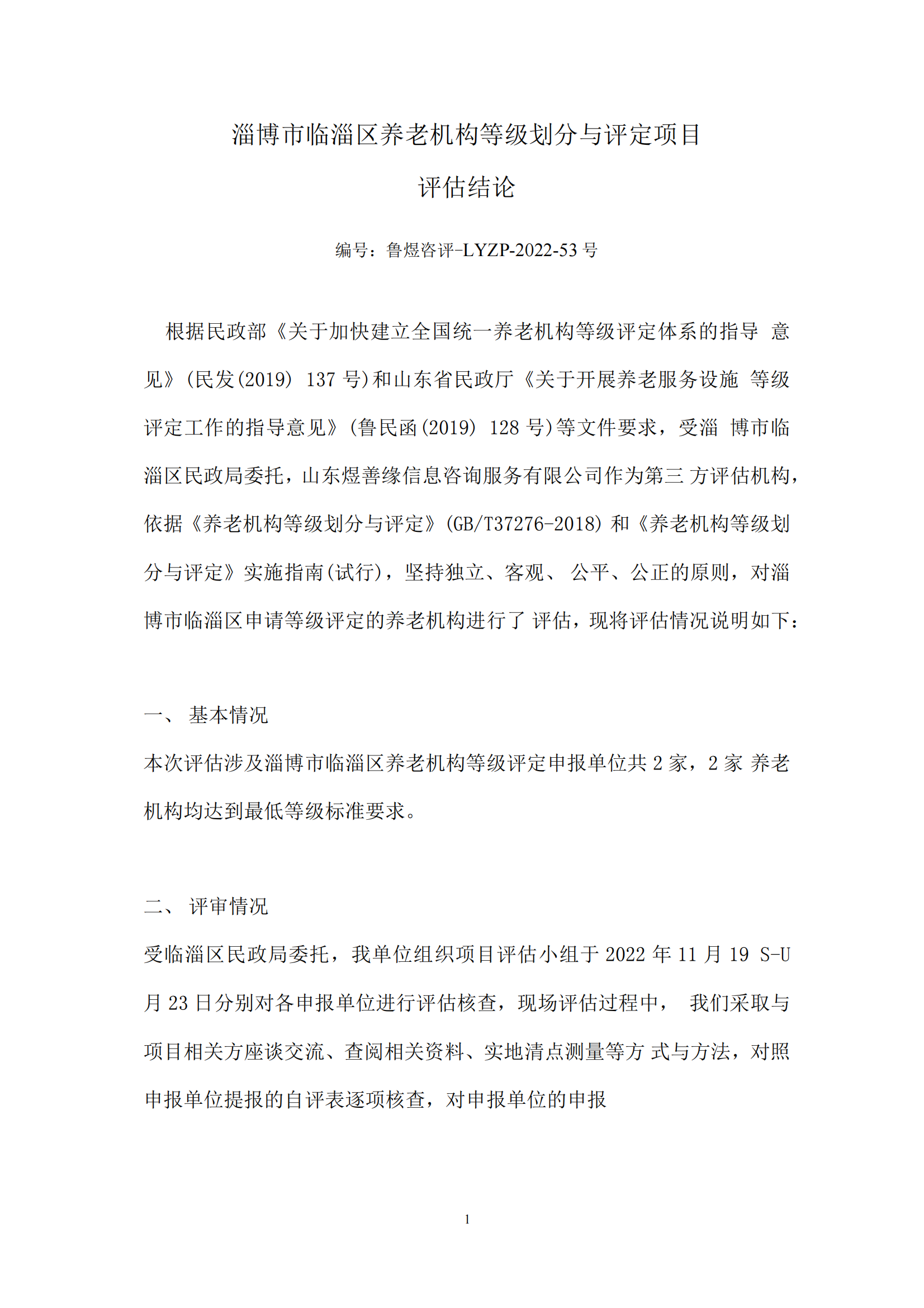 2022年淄博市临淄区养老机构等级划分与评定项目评估结论3