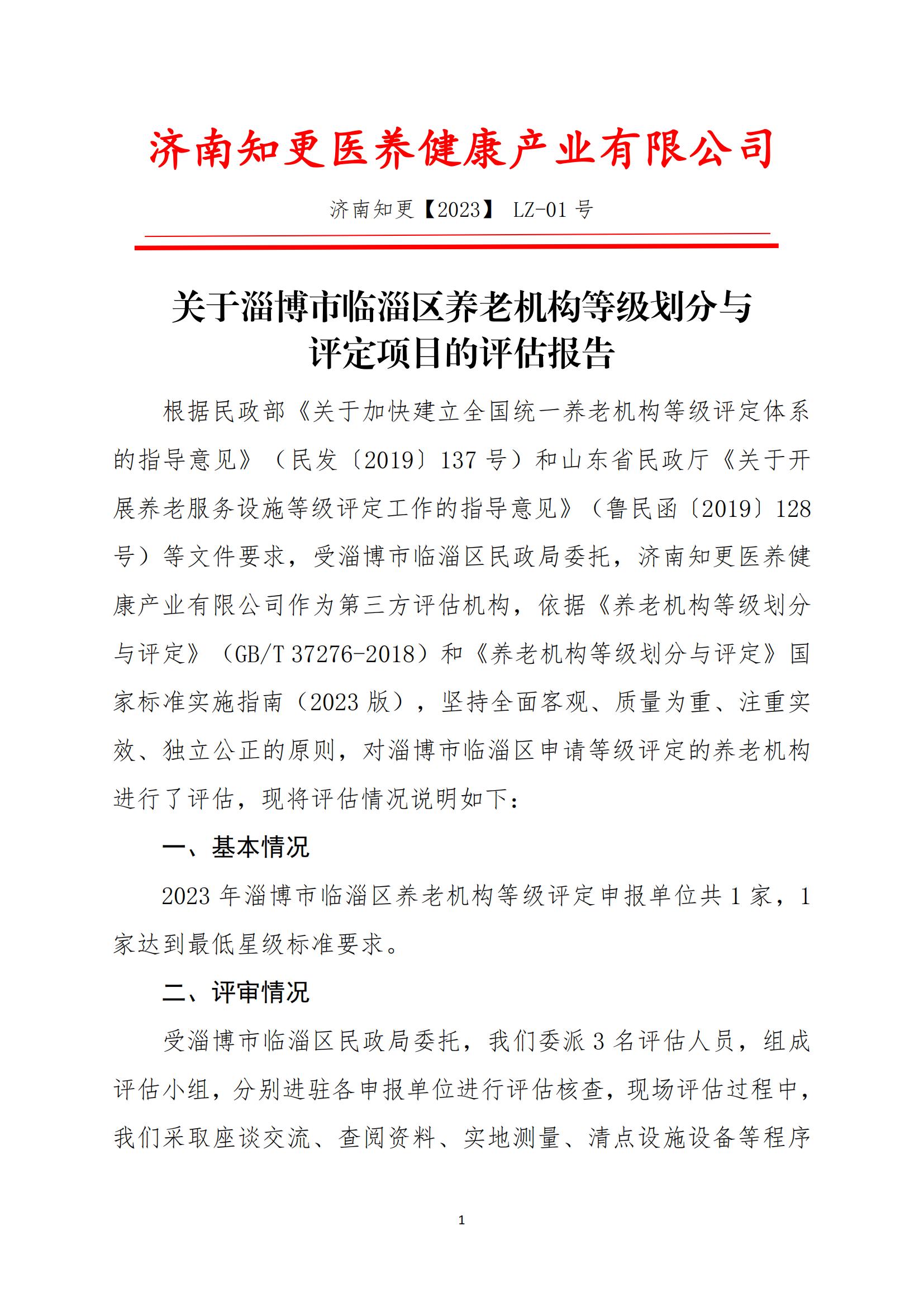 2023年淄博市临淄区养老机构等级划分与评定项目评估报告