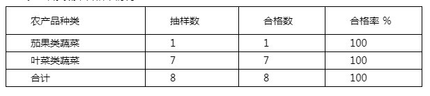 本次共抽检样品8个,全部取自齐陵街道,所抽8个样品均为蔬菜: