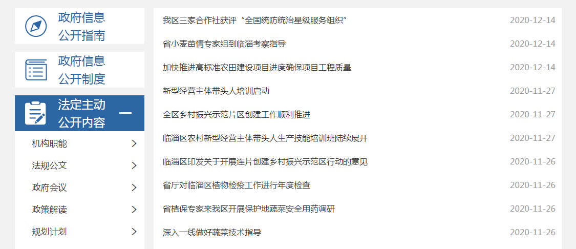 临淄区农业农村事业发展中心2020年政府信息公开工作年度报告