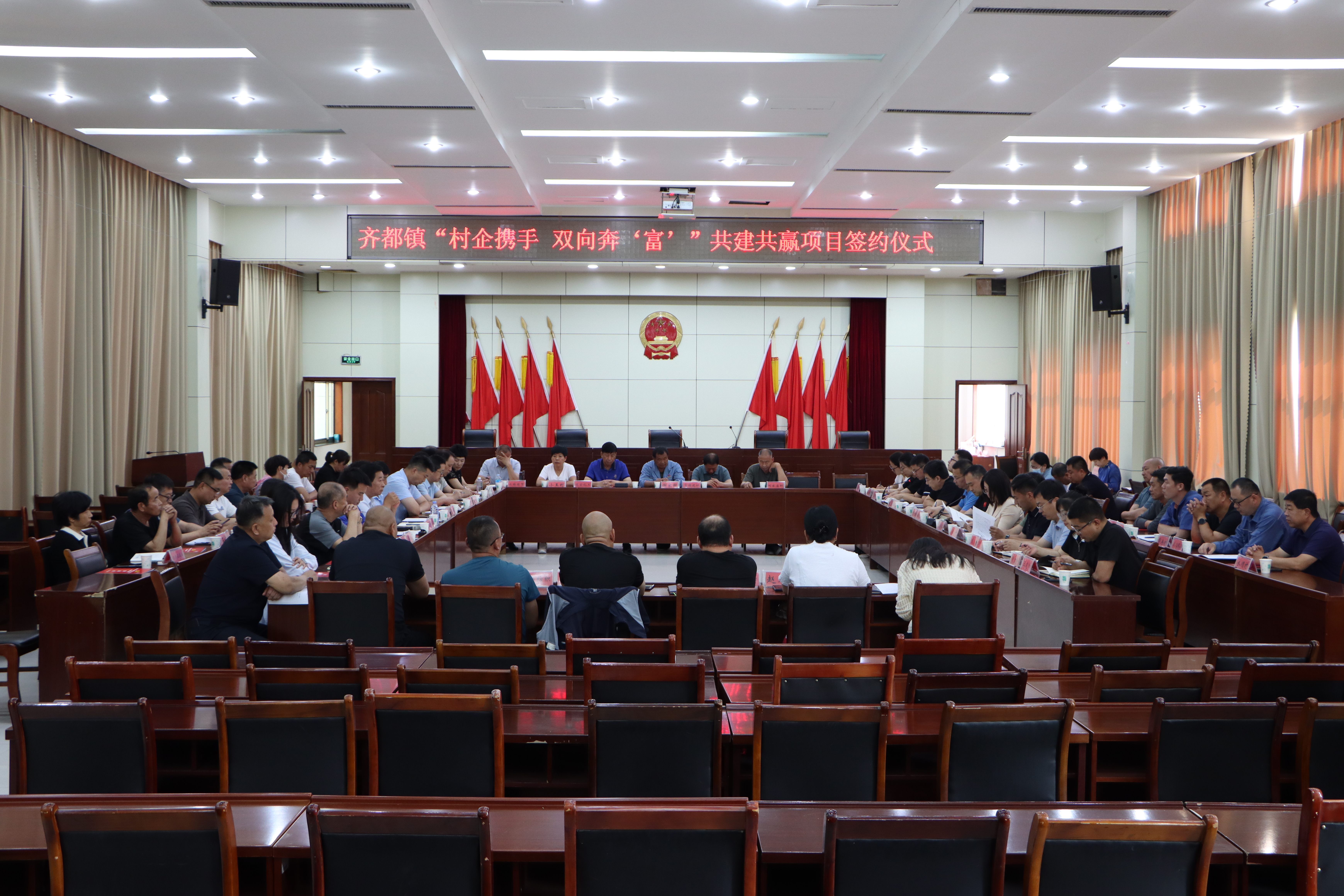 5月27日,齐都镇举办“村企携手 双向奔‘富’”共建共赢项目签约仪式暨民营企业座谈会。