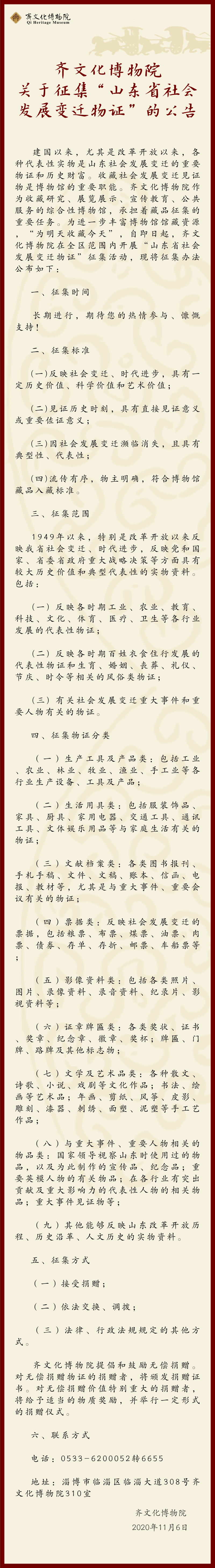【征集】齐文化博物院关于征集“山东省社会发展变迁物证”的公告