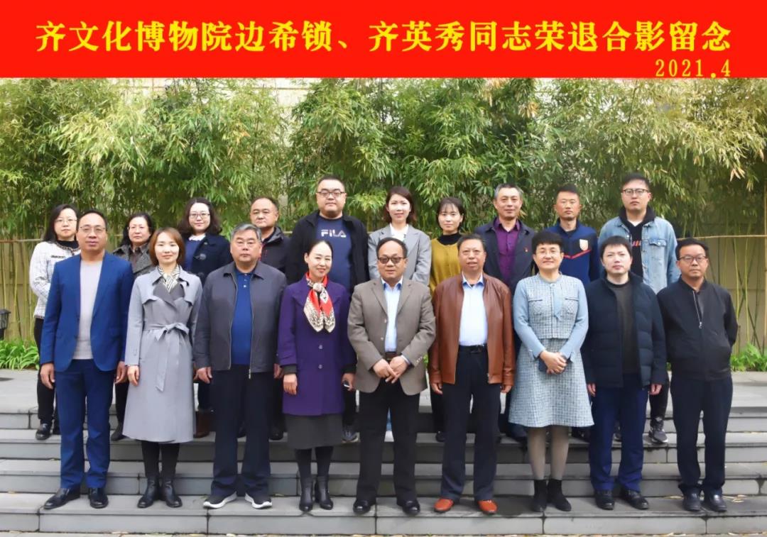 2021年4月12日上午,齐文化博物院为边希锁、齐英秀两位退休干部举行了荣退仪式。齐文化博物院党组书记朱淑菊主持仪式。齐文化博物院领导班子成员、荣退干部、全体干部职工参加仪式。