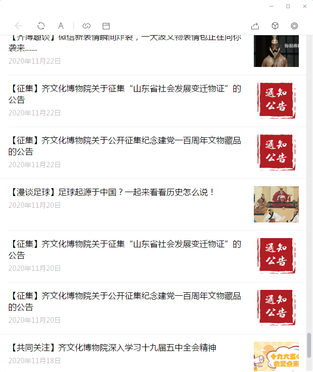 2019年,齐文化博物院通过政府网站主动公开信息500余条,微信平台发布330余条信息,主要内容包括部门文件、部门动态、人事信息、参观接待、重大活动等信息。‍充分发挥微信公众号平台作用,主动接受公众监督,随时发布工作动态,更新网站内容,便于群众第一时间博物馆动态等有关信息。