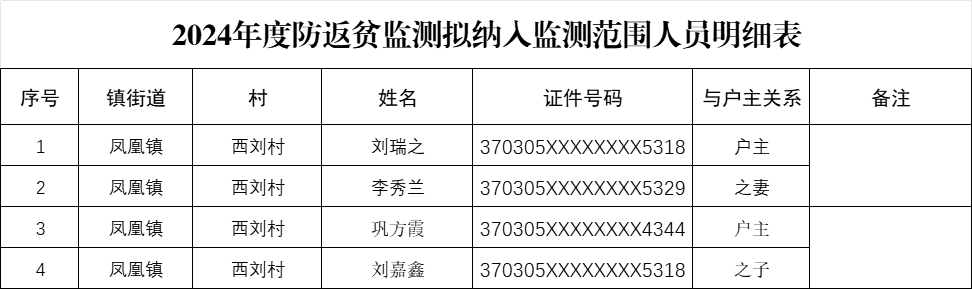 附件: 2024年度新识别认定防返贫监测帮扶对象名单