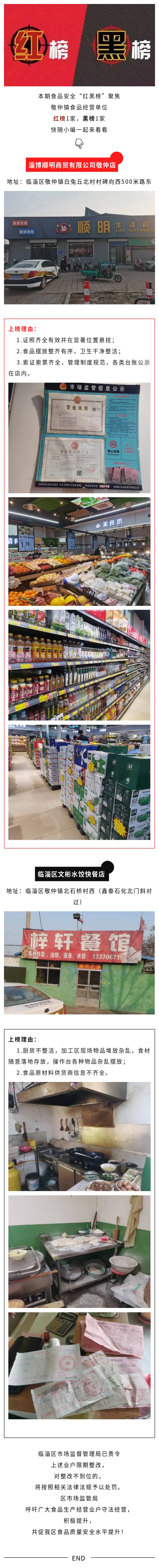 临淄区市场监督管理局食品安全提示警示“红黑榜”(第153期)——敬仲篇
