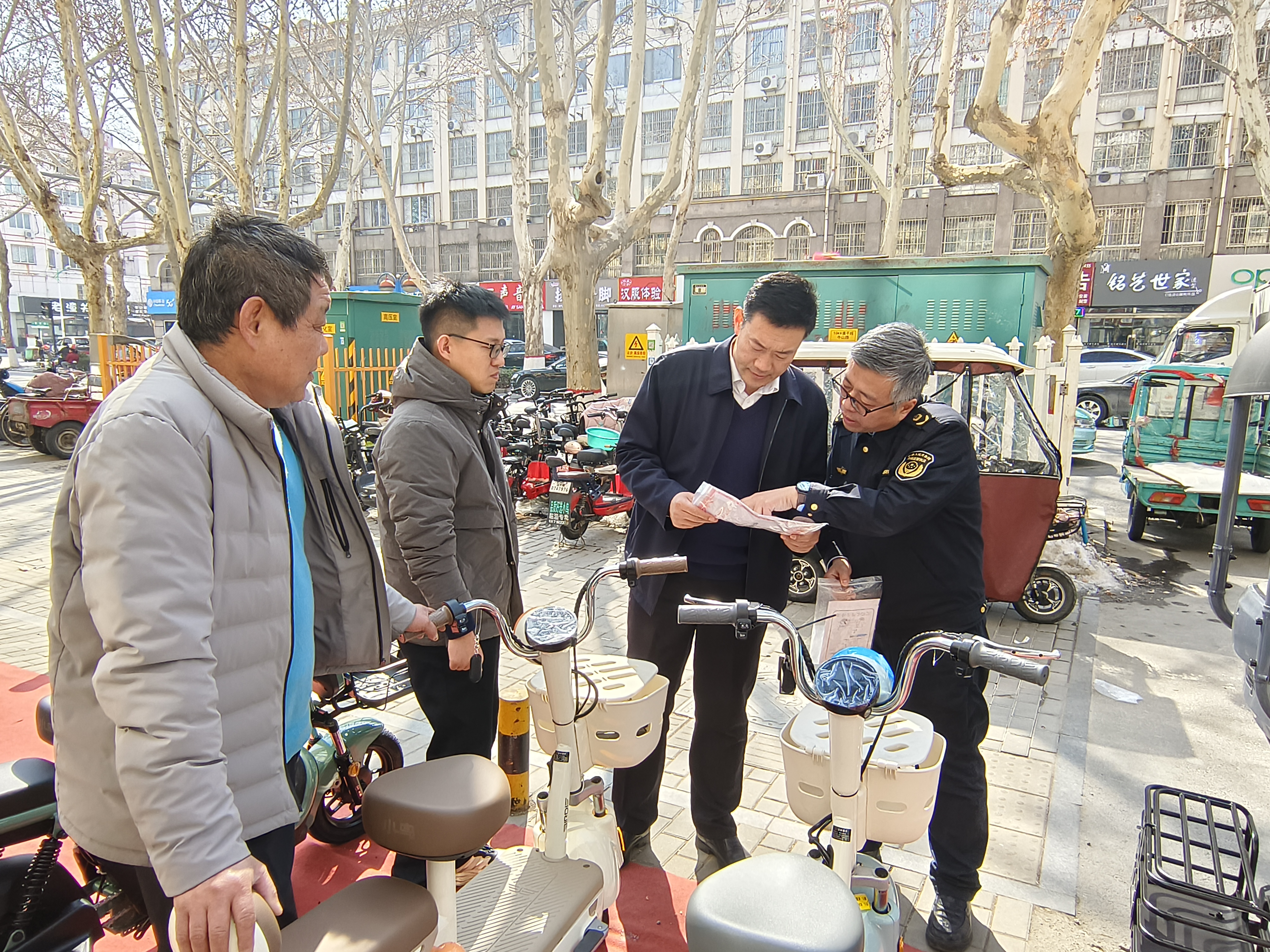 一方面夯实主体责任,强化责任担当。本次整治行动以电动自行车、电池盒、充电器等销售业户为主要监管对象,对产品质量、强制性认证证书、营业执照等情况进行监督检查,深入摸排辖区内电动自行车销售单位底数和基本经营情况,依法严厉查处销售无产品合格证书、无强制性认证标识、产品信息与认证证书载明内容不一致等不合格电动自行车的违法行为。同时按照76号令相关要求,检查经营者进货查验、留存票据等落实产品质量主体责任的情况,对落实不到位的业户及时纠正指导。截至目前我区无电动自行车生产企业,共出动执法人员176人次,对128家业户进行督导检查,发现并已完成整改5件,行政处罚2起。