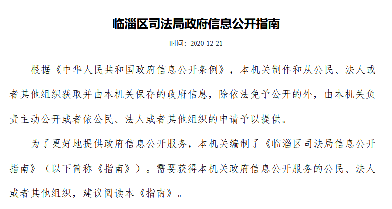 临淄区司法局政府信息公开指南