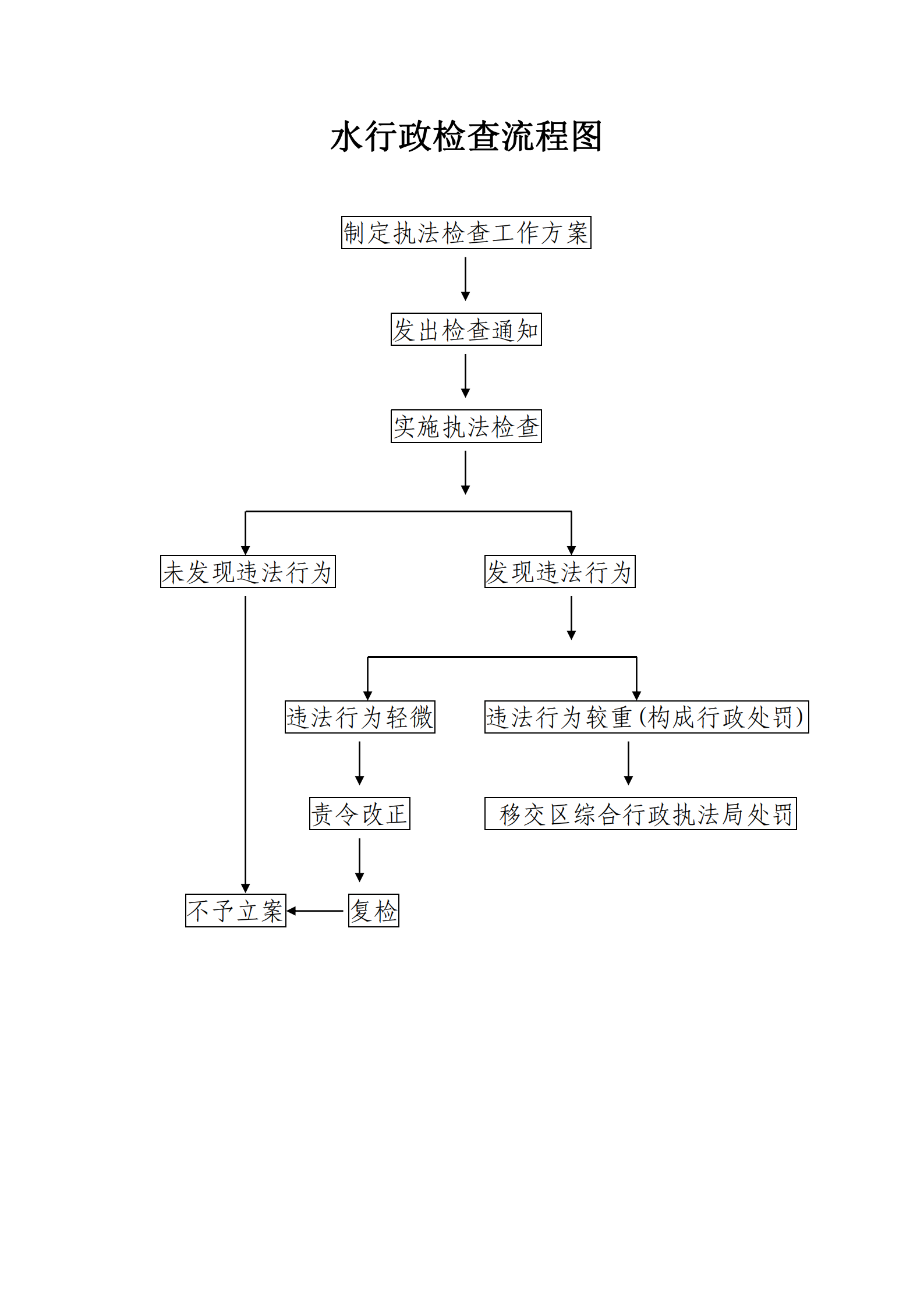 制定检查方案-发出检查通知-实施检查(如发现违法行为-责令改正-构成行政处罚的移交区综合行政执法局)