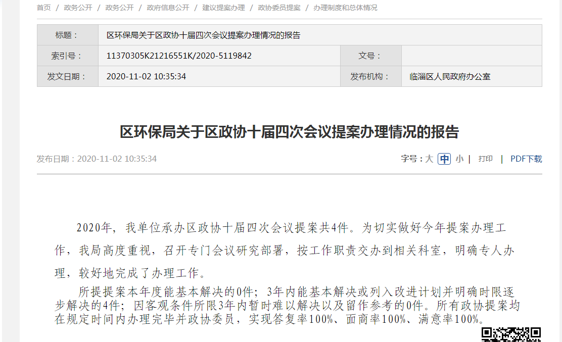 淄博市生态环境局临淄分局2024年政府信息公开工作年度报告