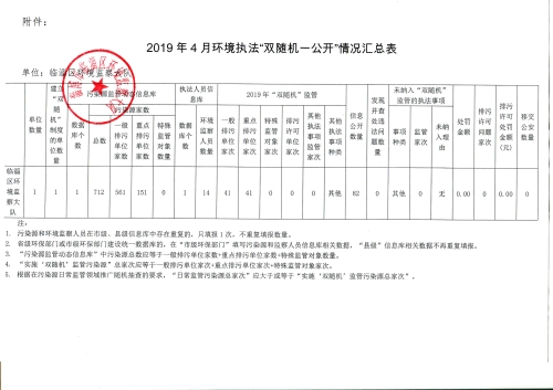 2019年4月环境执法“双随机、一公开”情况汇总表