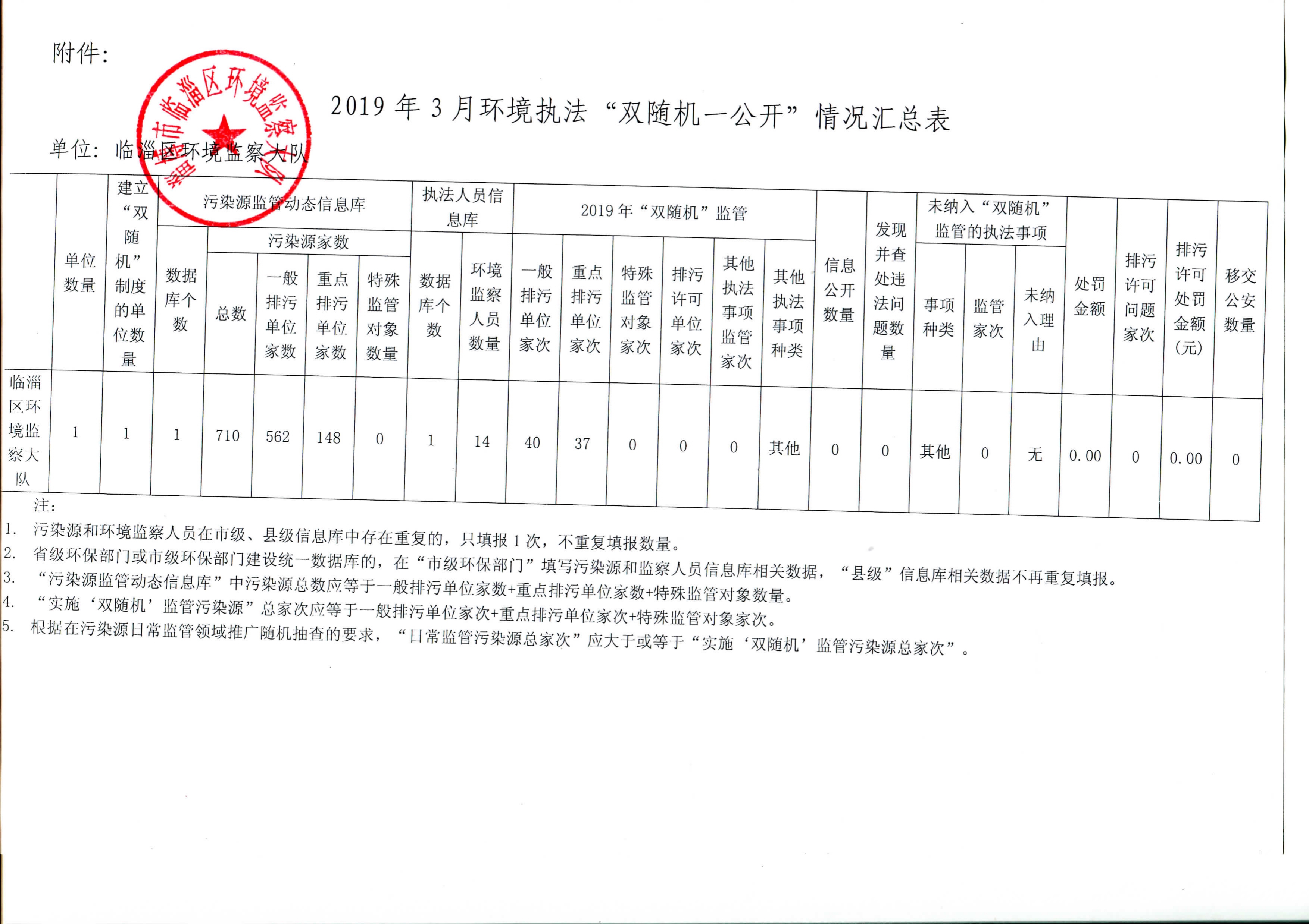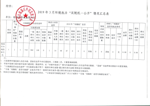 2019年3月环境执法“双随机、一公开”情况汇总表