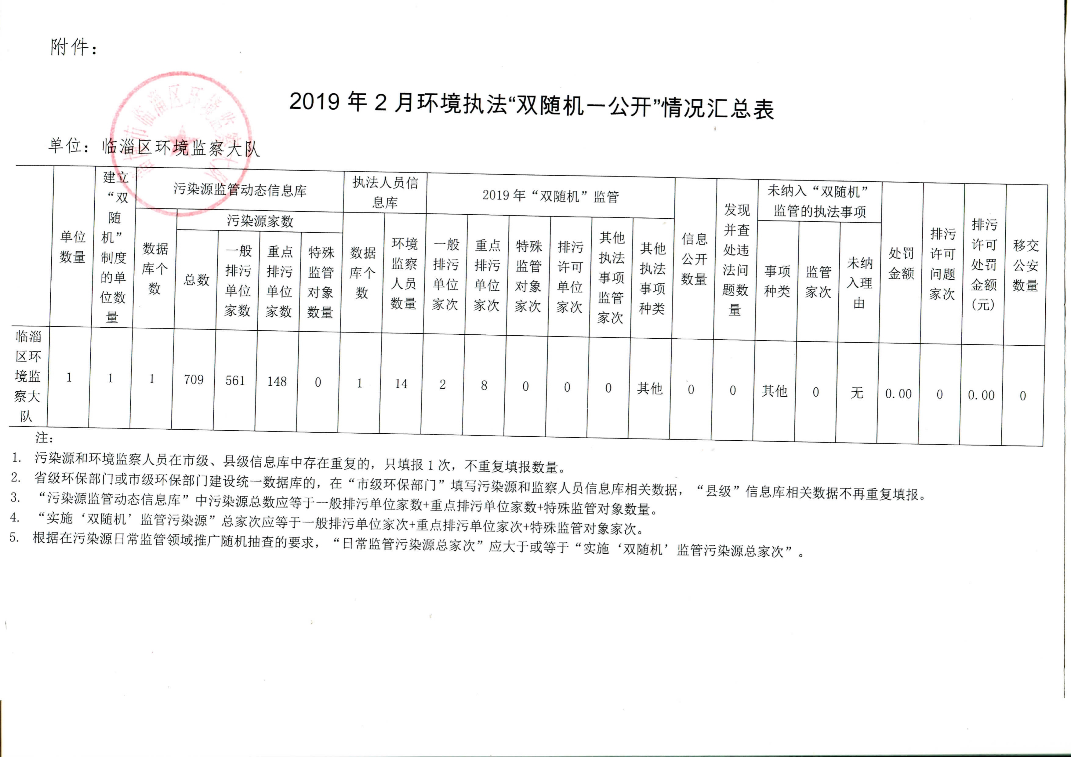 2019年2月环境执法“双随机、一公开”情况汇总表