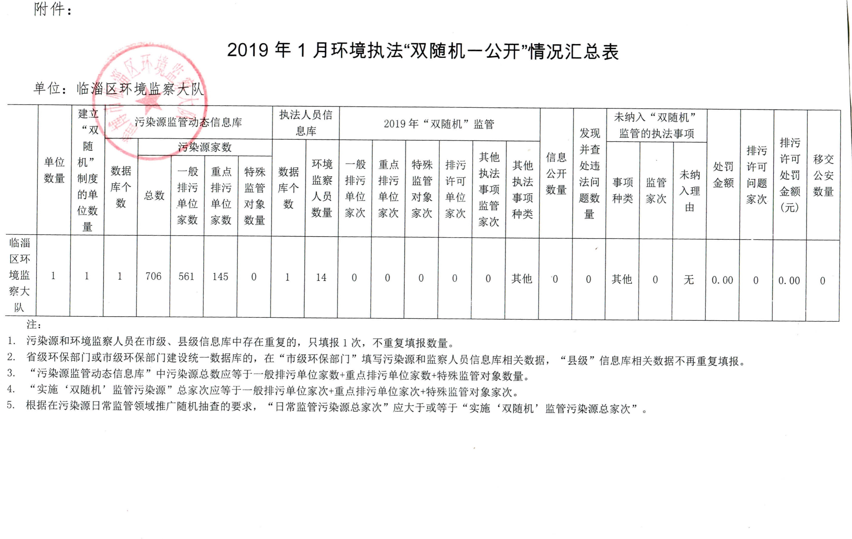 2019年1月环境执法“双随机、一公开”情况汇总表