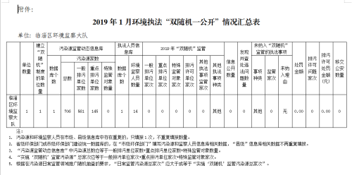 2019年1月“双随机”工作进展信息调度表