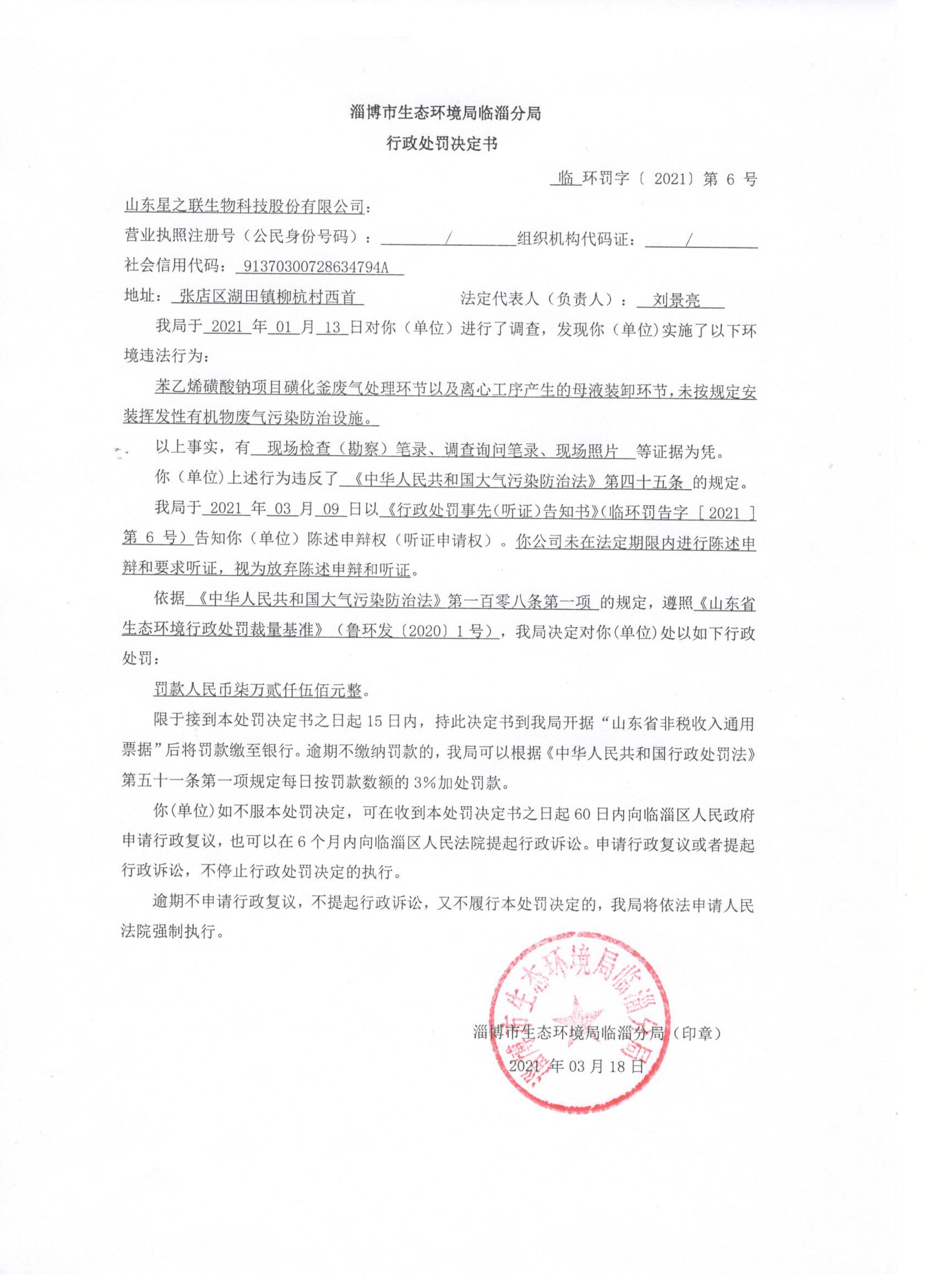 临环罚字[2021]第6号