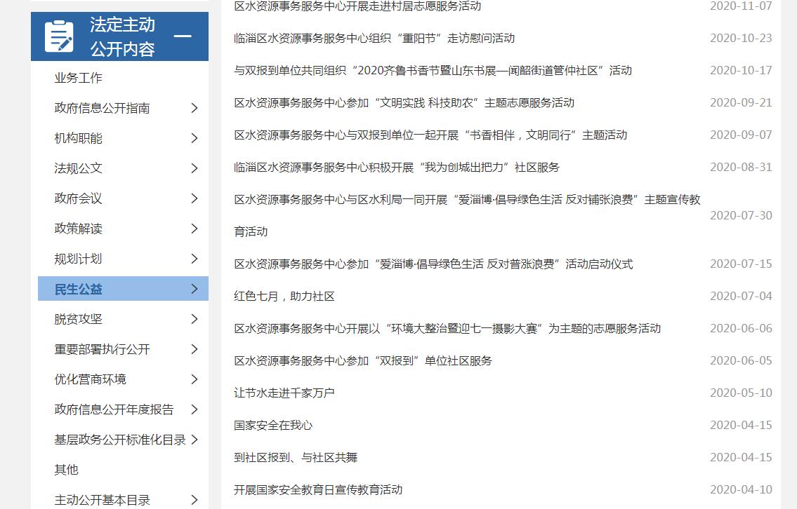 临淄区水资源事务服务中心2020年政府信息公开工作年度报告