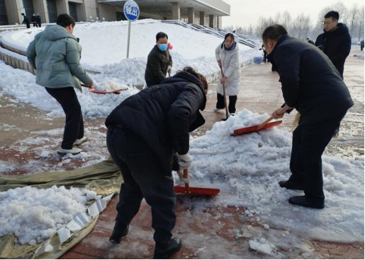 上午7点半,局全体干部职工准时在行政办公中心前集合,大家手持铁锹、扫帚等工具,顶着寒风,热情高涨地投入到扫雪除冰行动中。活动现场,志愿者们分工明确,配合默契,对院内积雪进行集中清理。尽管天气寒冷,但大家干劲十足,忙碌的身影成为雪地里一道亮丽的风景线。