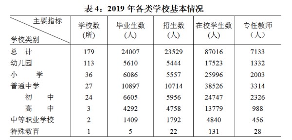 年末全区拥有幼儿园113所,在园幼儿数1.8万人,专任教师师生比为1:13;义务教育阶段小学招生5557人,专任教师师生比为1:13;初中招生5956人,专任教师师生比为1:11;普通高中招生4758人,专任教师师生比为1:14;特殊教育招生22人,专任教师师生比为1:5。