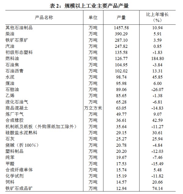 全年规模以上工业增加值比上年增长1.4%;工业总产值比上年下降7.8%;营业收入比上年增长5.2%;利润比上年下降41.8%。