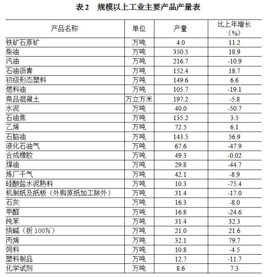 全年规模以上工业增加值(按可比价计算)比上年增长6.4%;工业总产值比上年增长17.7%;营业收入比上年增长3.7%;利润比上年下降86.2%。