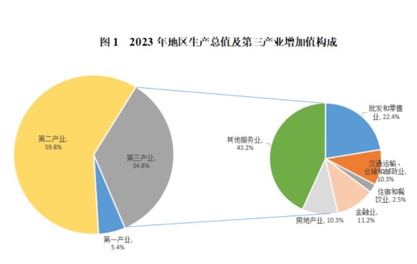 根据市统计局统一初步核算,2023年全区生产总值为913.7亿元,比上年增长5.6%。分产业看,第一产业增加值为49.7亿元,比上年增长4.5%;第二产业增加值为546.2亿元,比上年增长6.0%;第三产业增加值为317.8亿元,比上年增长5.1%。三次产业比调整为5.4:59.8:34.8。