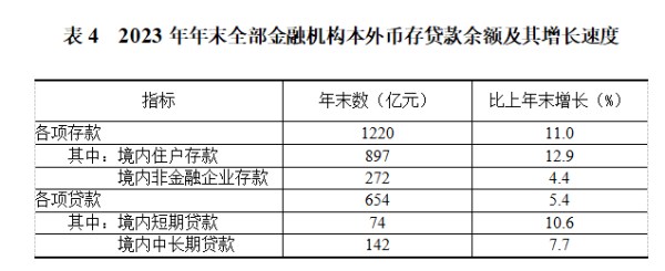 年末金融机构各项本外币存款余额1220.4亿元,比年初增加120.8亿元。其中,住户存款余额897.3亿元,比年初增加102.2亿元;非金融企业存款余额272.3亿元,比年初增加11.4亿元。金融机构各项本外币贷款余额653.6亿元,比年初增加33.2亿元。金融存贷比为53.6%。