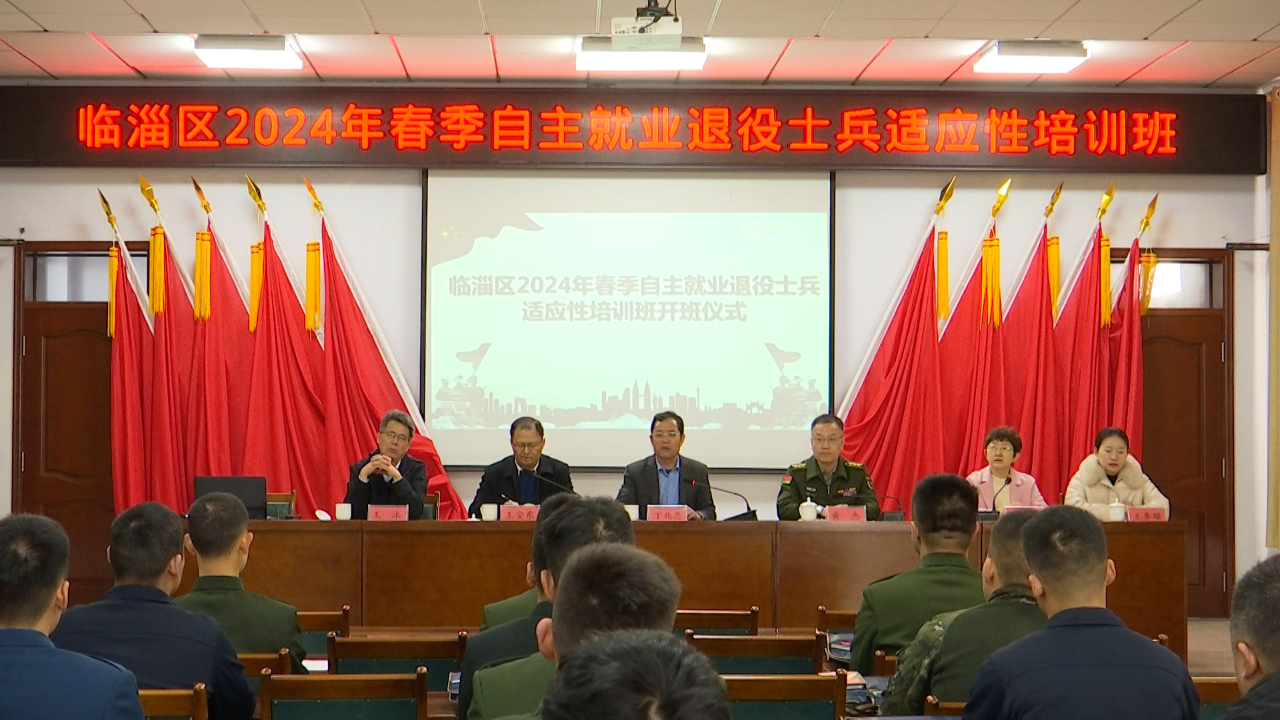3月20日上午,临淄区2024年春季自主就业退役士兵适应性培训班顺利开班,淄博市退役军人事务局党组成员、四级调研员丁兆忠,区委退役军人事务工作领导小组副组长、人武部政委黄杰,临淄区退役军人事务局班子成员,2024年春季自主就业退役士兵参加开班仪式。