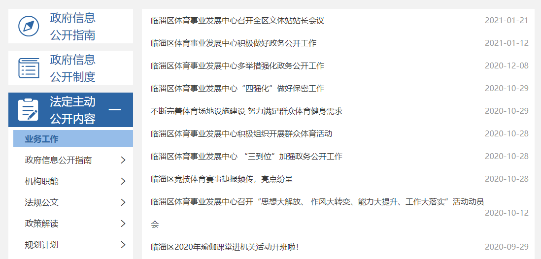 临淄区体育事业发展中心2020年政府信息公开工作年度报告