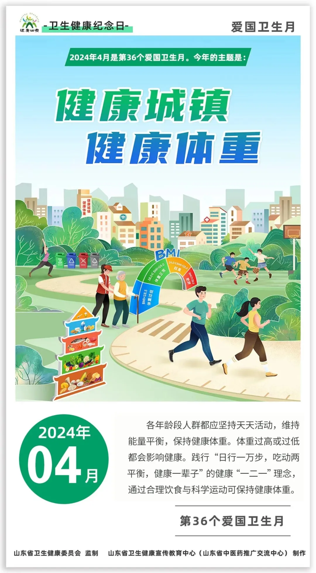 第36个爱国卫生月来了,主题是:健康城镇 健康体重