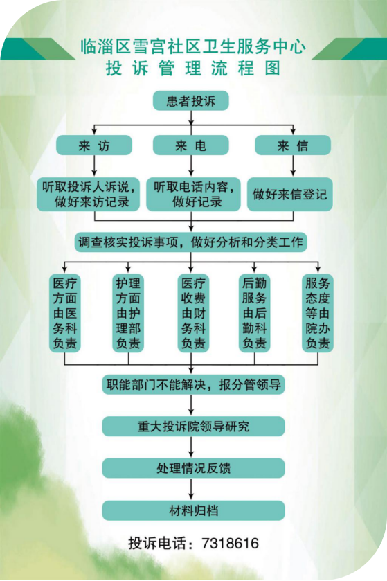 临淄区雪宫社区卫生服务中心公开投诉处理程序、地点、接待时间和联系方式