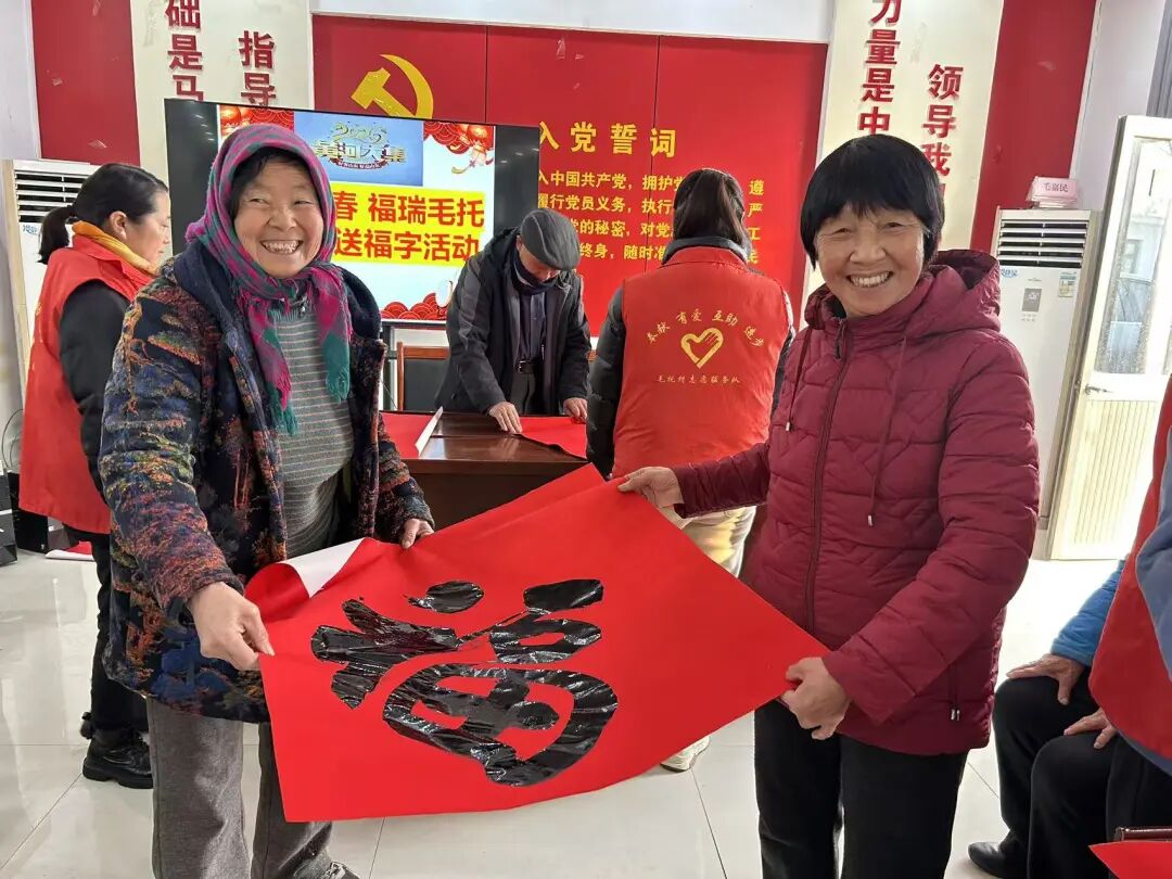 贴福字是春节的传统习俗,它与书法的美妙结合,又成中华民族绚烂多彩的艺术独创。福字承载着人们对幸福生活的向往,活动通过书写和赠送福字,让参与者直观感受传统文化的魅力。新春佳节来临之际,2月5日上午,村两委邀请村书法协会的老干部牛福民、老党员石志孟同志在新时代文明实践站开展了“骏马迎春 福瑞毛托”暨“黄河大集”写福字送福字志愿活动。
