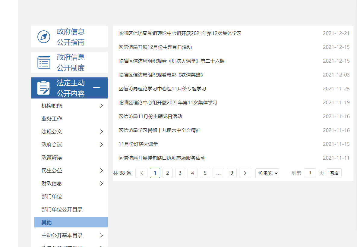2、按照上级要求,及时编制了《临淄区信访工作政府信息公开目录》,将机关主要职能等内容及时公开。