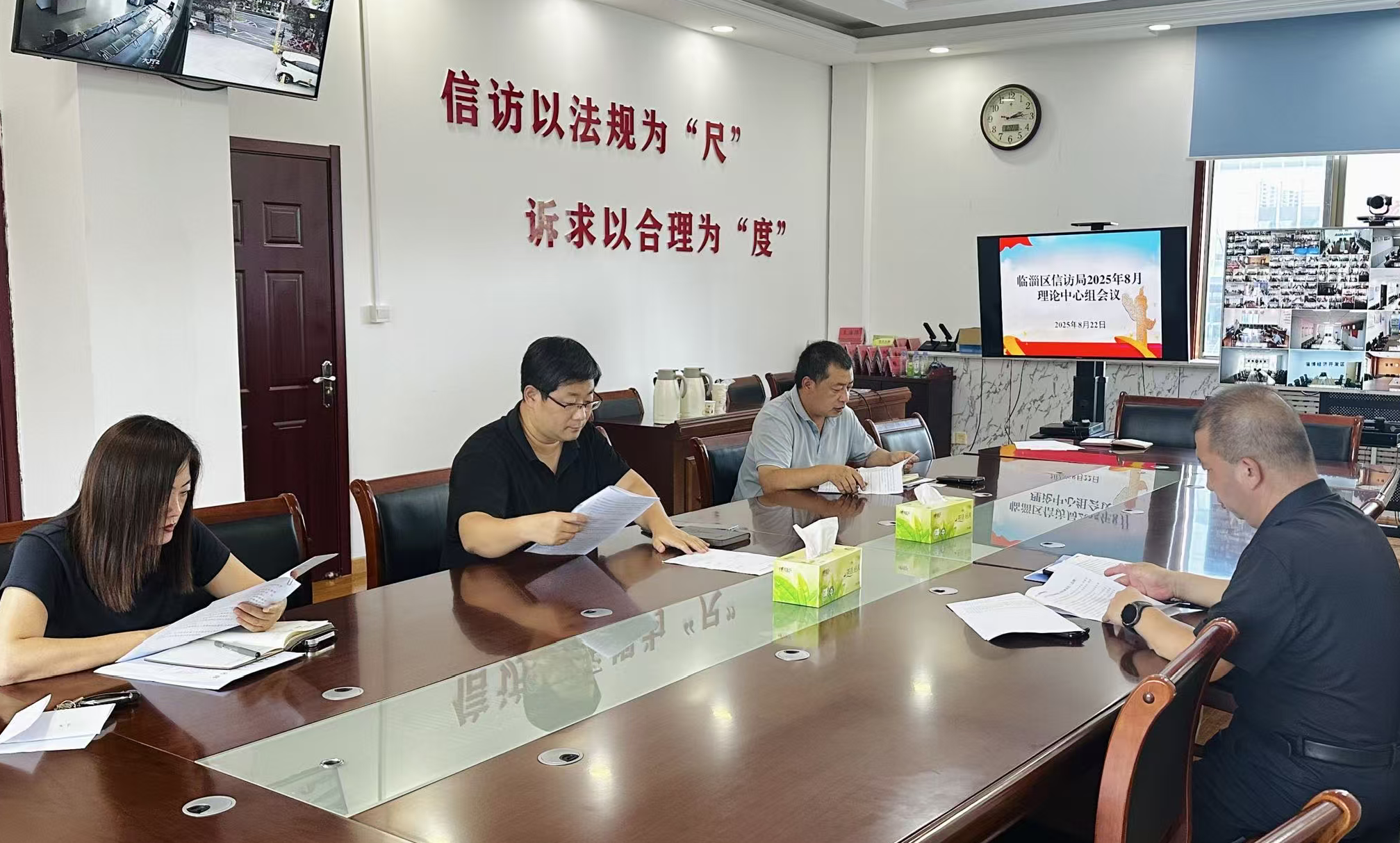 8月22日,区信访局党组开展理论中心组学习活动,本次学习采取集体学习和交流研讨的方式进行。与会人员集体学习了中华人民共和国保守国家秘密法(总则)、习近平论坚持总体国家安全观和习近平关于加强党的作风建设论述摘编(八)。本次集体学习由区信访局党组书记、局长徐永刚同志主持,由胡立国、戴效永同志轮流领学。