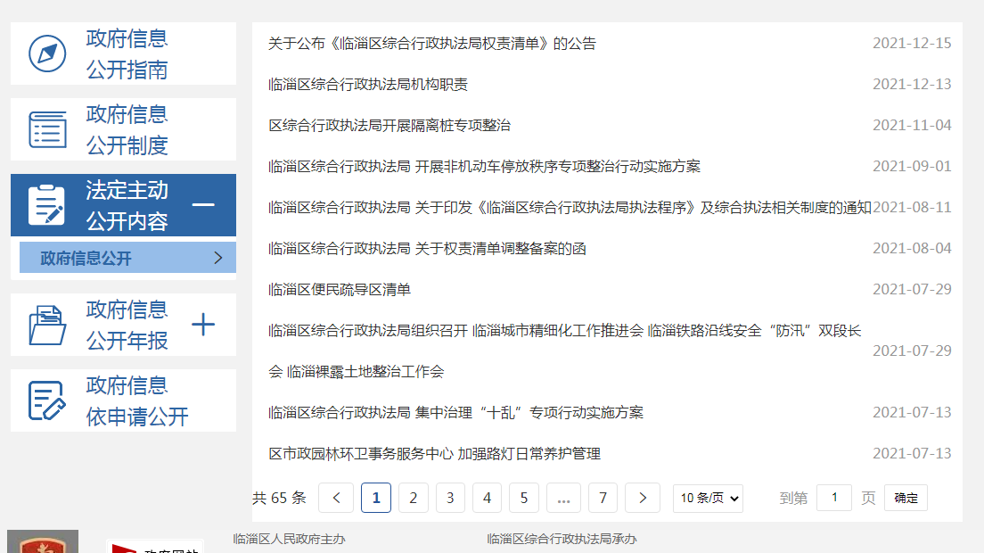 临淄区综合行政执法局政府信息公开指南