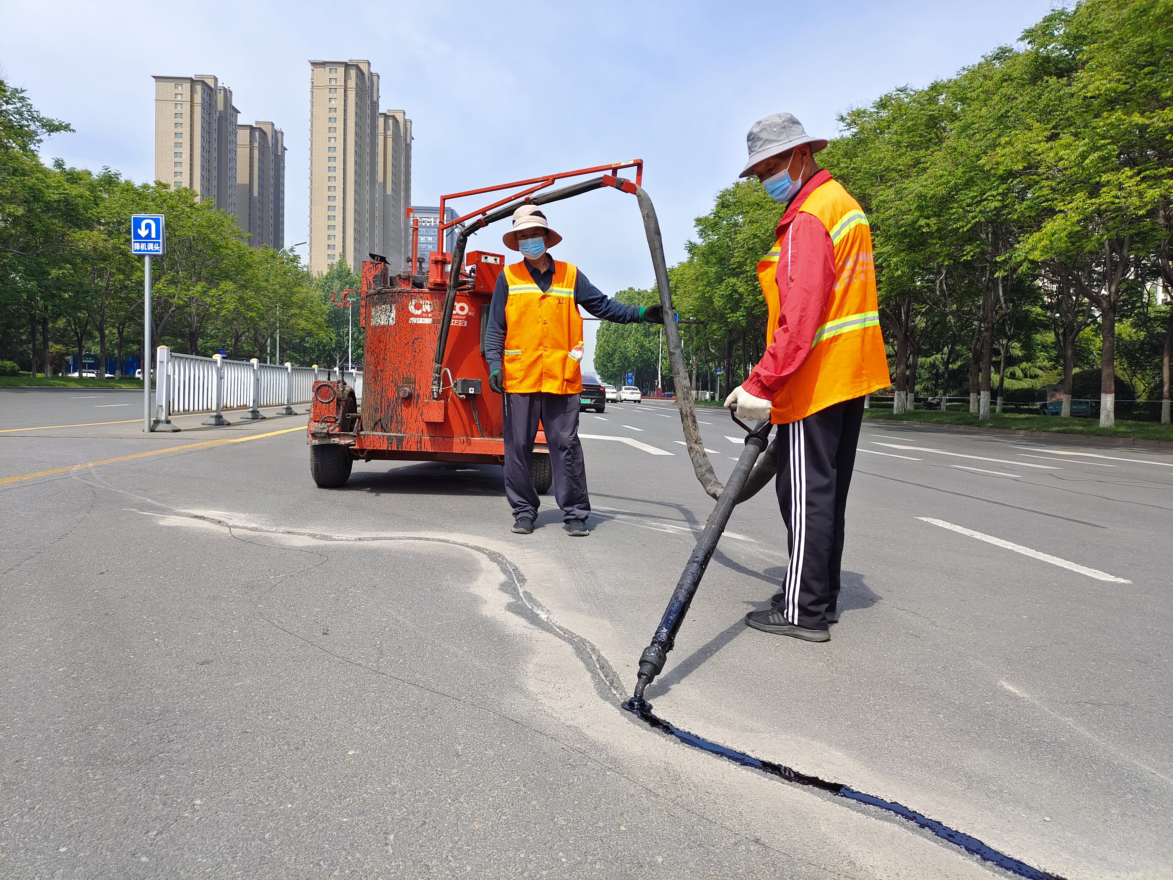 为降低交通安全隐患,有效延长道路使用年限,给市民提供“畅、安、舒、美”的市区道路环境,临淄区综合行政执法局市政环卫园林事务服务中心对城区临淄大道、辛化路、杨坡路、乙烯路等路段开展道路灌缝修补工作。