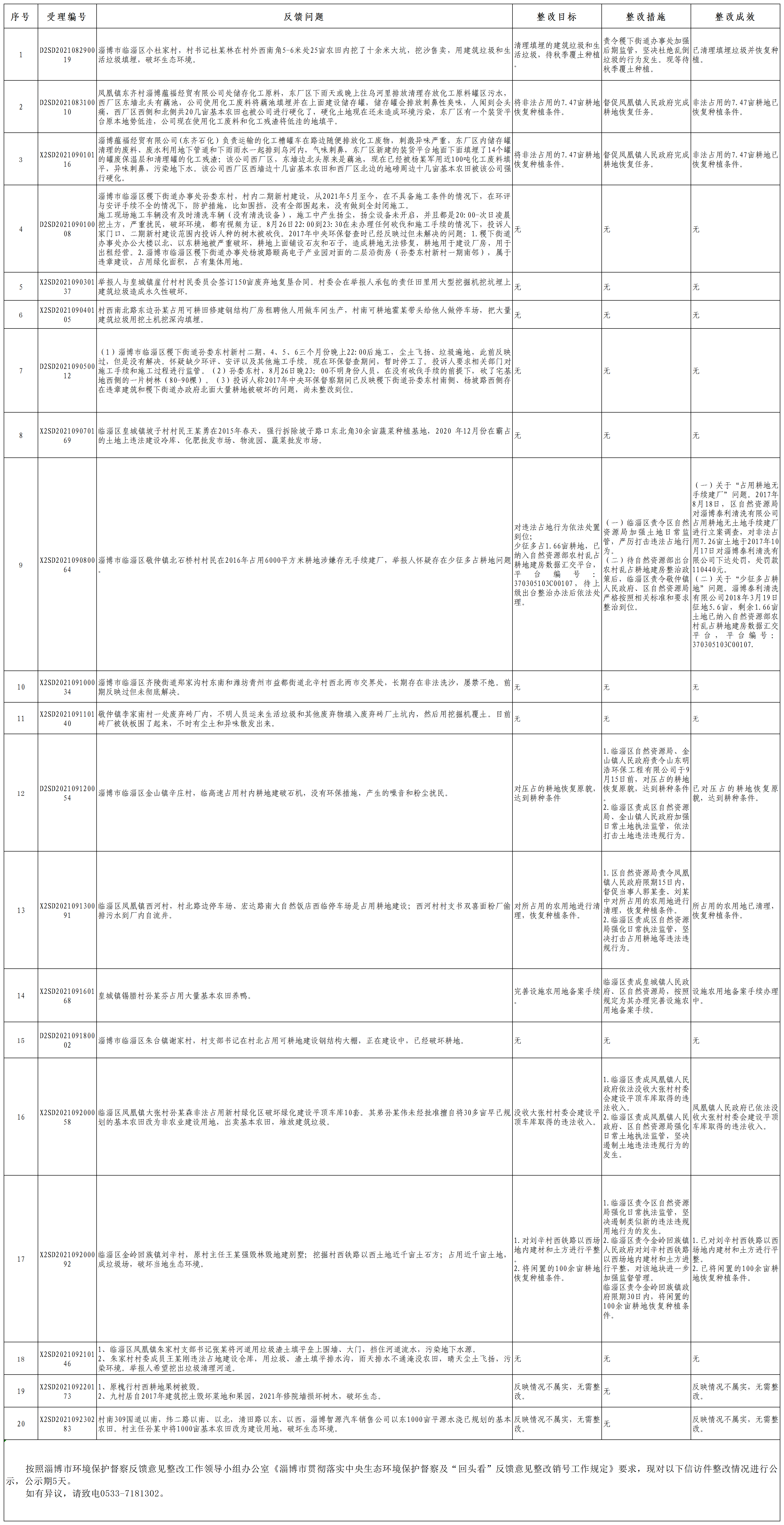 第二轮中央生态环境保护督察组交办信访件整改销号公示