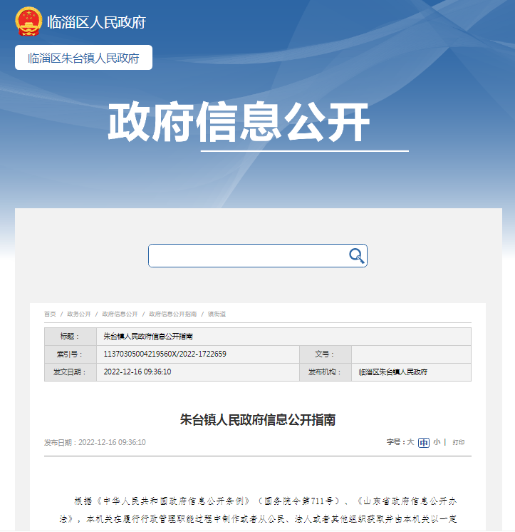 本机关政府信息公开工作申请受理机构为:淄博市临淄区朱台镇人民政府党政办公室